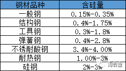 不同種類鋼材的含硅量